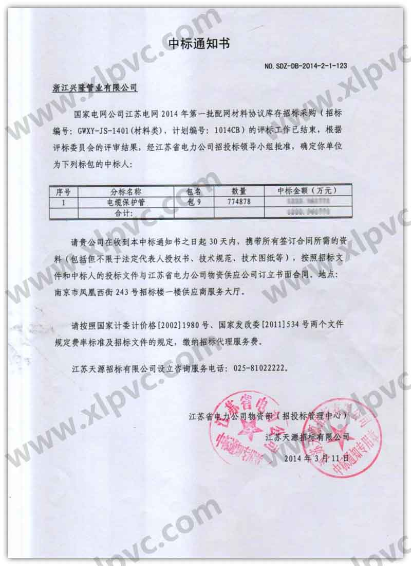 中標通知書